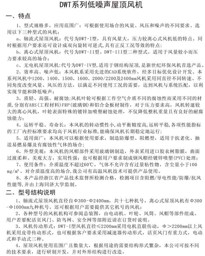 二、DWT-II、III 系列離心式屋頂風機