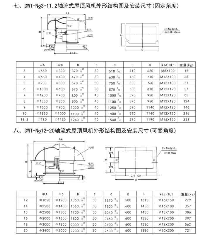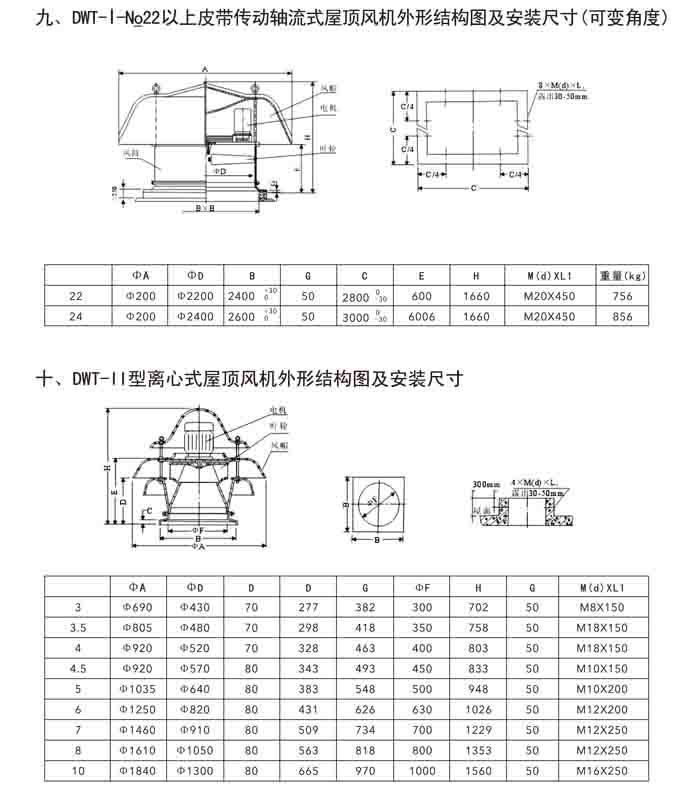二、DWT-II、III 系列離心式屋頂風機